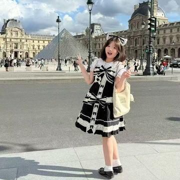 “ The sweet bow is like a crown-finishing touch, the gothic black and white color combination exudes an elegant aura, the Chinese-style button embroidery has a unique charm, and the pastoral floral design is fresh and natural.”