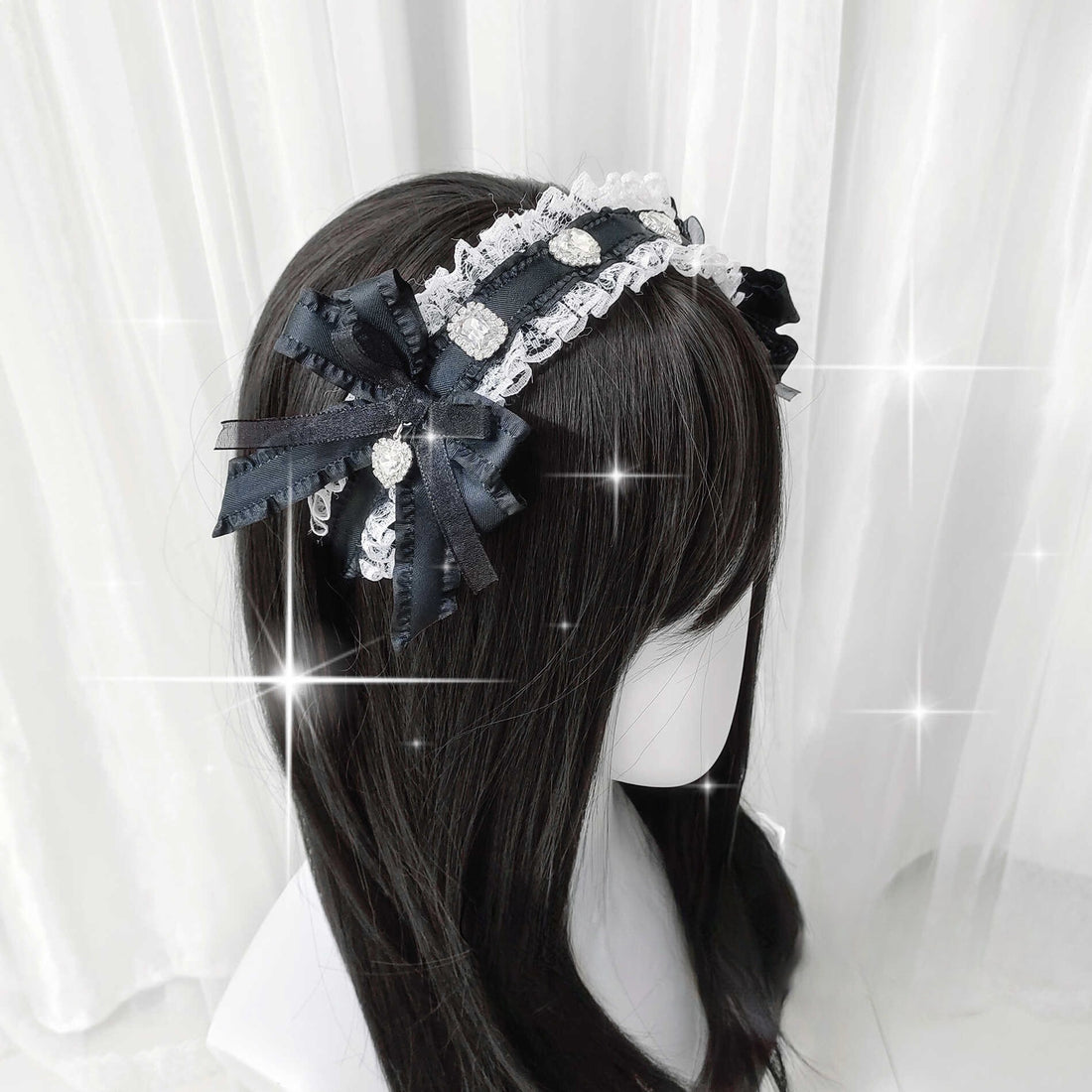 Original Handmade Lace Heart Rhinestone Bow Lace Headband Lolita Hair Accessory