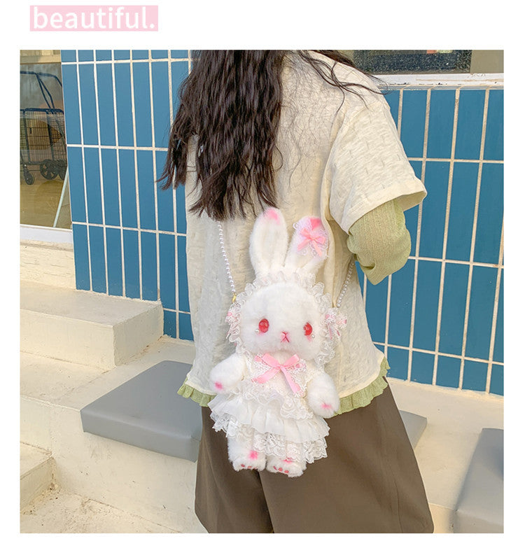 Lop-Eared Bunny Lolita Pearl Chain Doll Bag – 2025 Cute Bow Plush Shoulder Bag