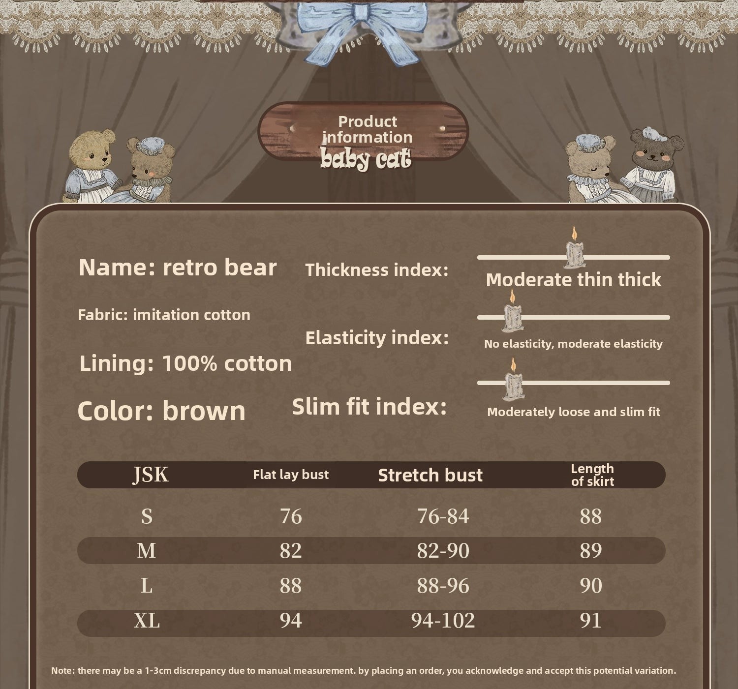 Sweet Dreams Baa-Baa -Vintage Bear- Original Design Lolita JSK