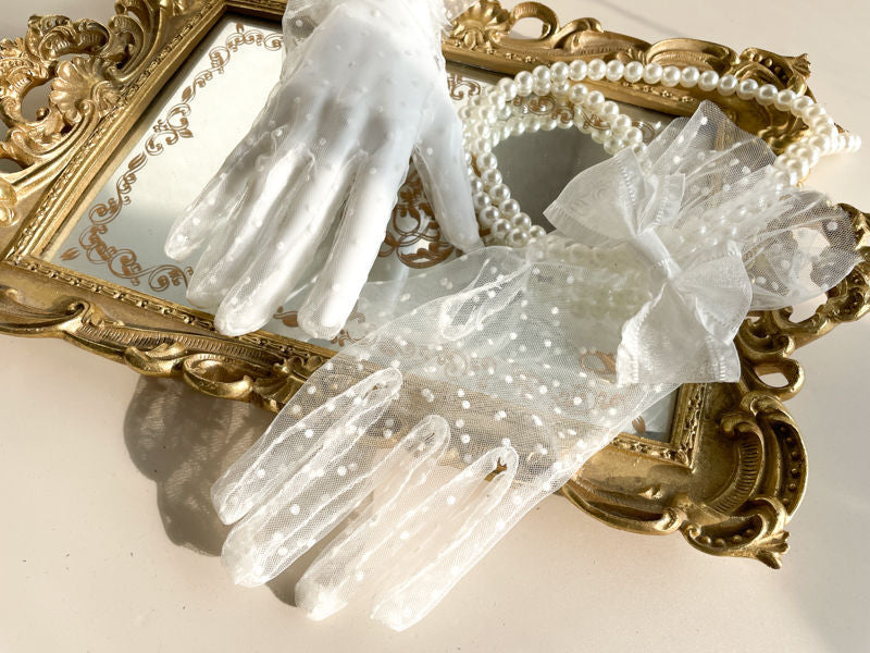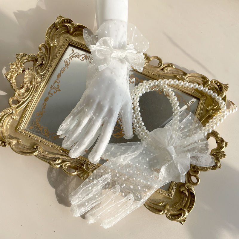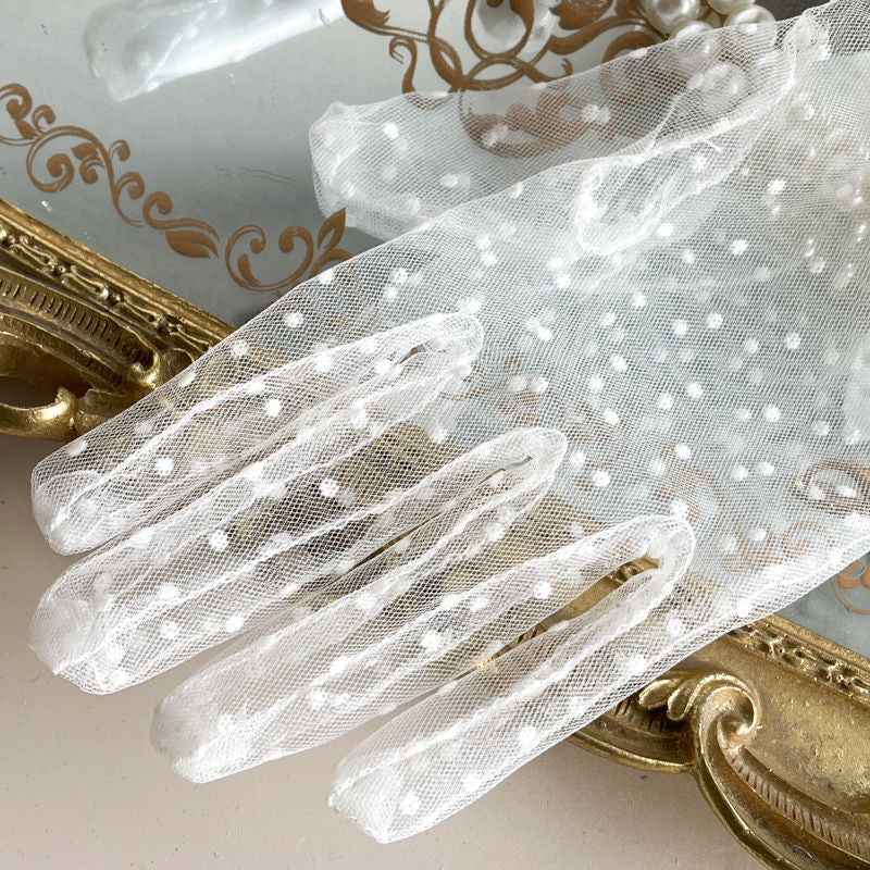 Black & White Two-tone Lace Polka Dot Gloves - Lolita Mesh Sleeves Cla Style Wedding Edition