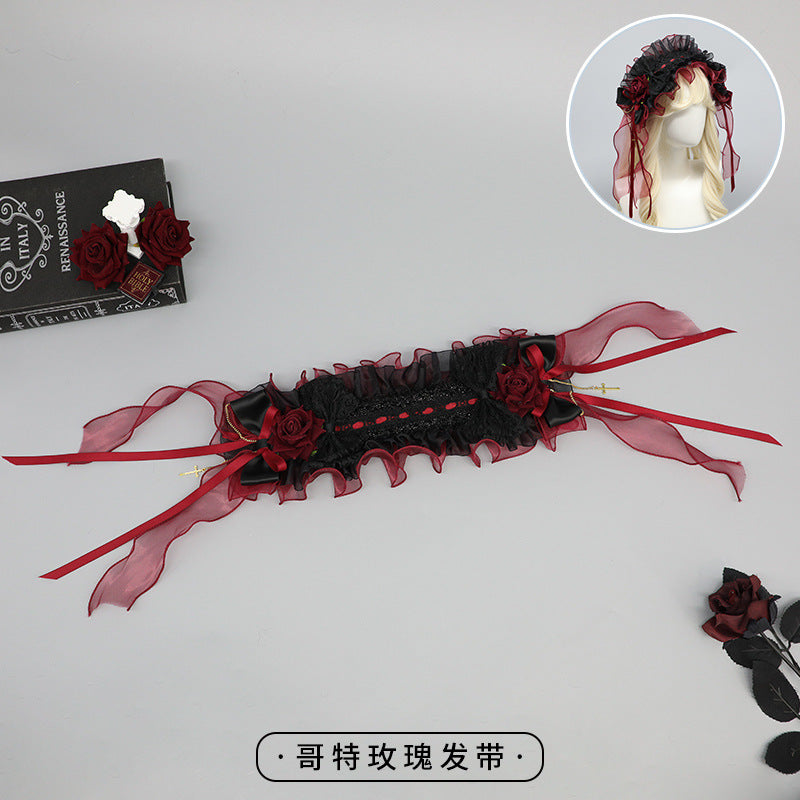 Lolita Original Hairband Gothic Rose Veil Luxurious Dark Elegant Tea Party Lolita Versatile Hairband Headwear