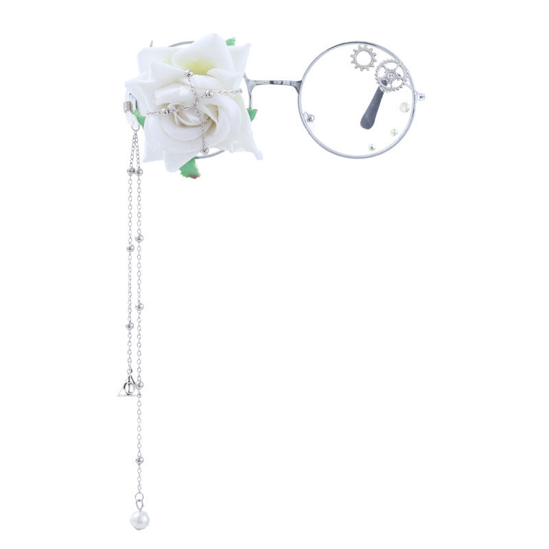 Silver White Flower Gear Glasses